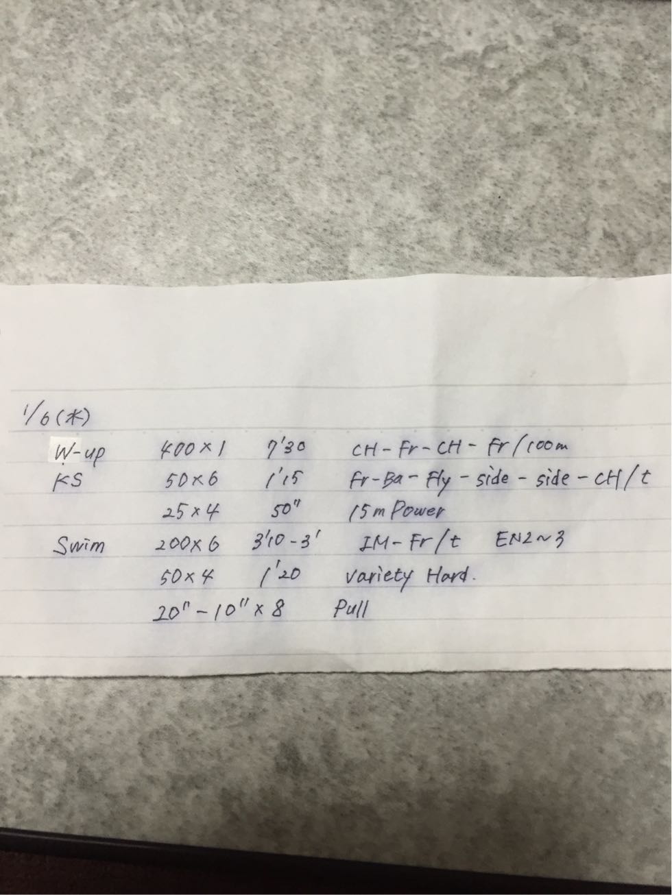 今年初の練習はいつもよりコースが狭く、センターラインもありませんでした。体幹がしっかりしてる人はラインがなくても真っ直ぐ泳げたと思います。