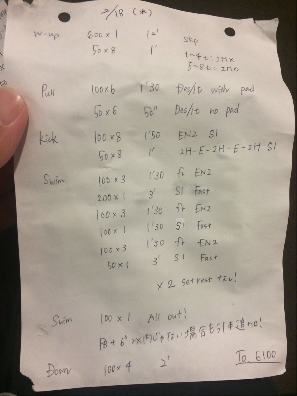 一定のハイペースで泳ぐのが難しくてどうしても後半に落ちていってしまいました、これからの強化練で落ちない泳ぎ、落ちない体力をもっと身につけていきたいとおもいました!