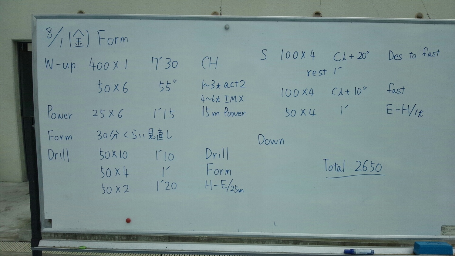 フォーム中心の練習でした。30分フォーム見直しのときに先輩方や神大の方々からアドバイスをいただきました。ありがとうございました。おかけでターンもスムーズにいくようになりました。あと、前から課題だった肩甲骨を使って泳ぐというのが少しイメージをつかむことができました。大会までもうすぐですが、今日教わったことを忘れないように残りの練習でもしっかりと意識していきたいと思います。