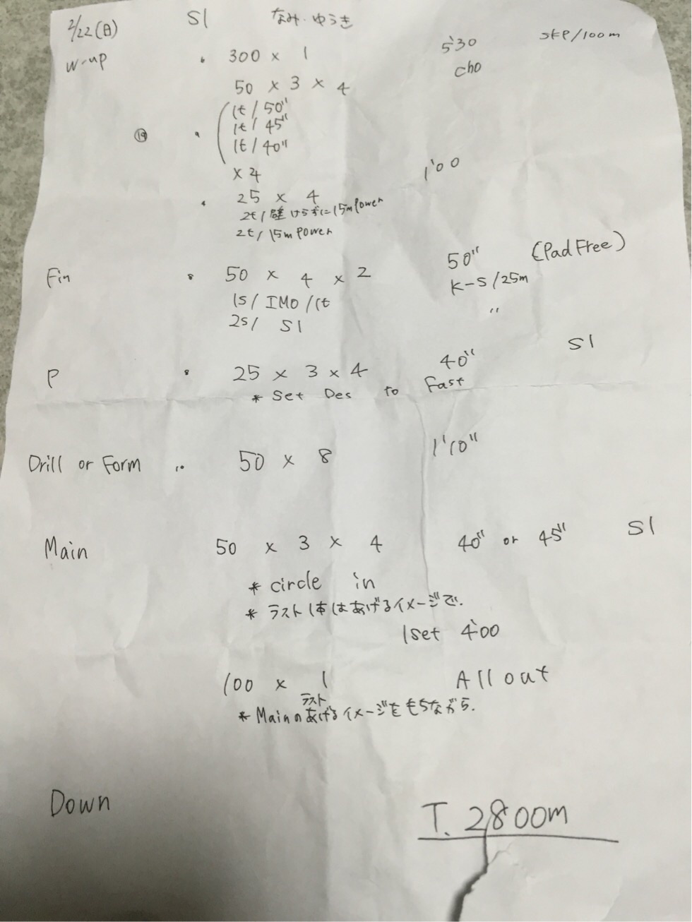 どうすれば抵抗少なく進めるのかなどと考えて泳ぐと同じ量を泳いでいても