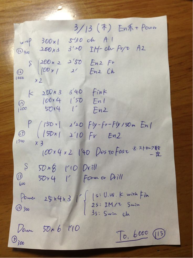 最後はパワーをしました。初めてフィン付きでドル平をしました。ブレ専の人はキックの推進力がこんくらいあるんだろうなあと思いました。感動するようなタイムが告げられ嬉しかったです。
