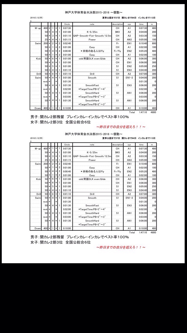この調子で明日も全員がベスト出せるように頑張っていきましょう。