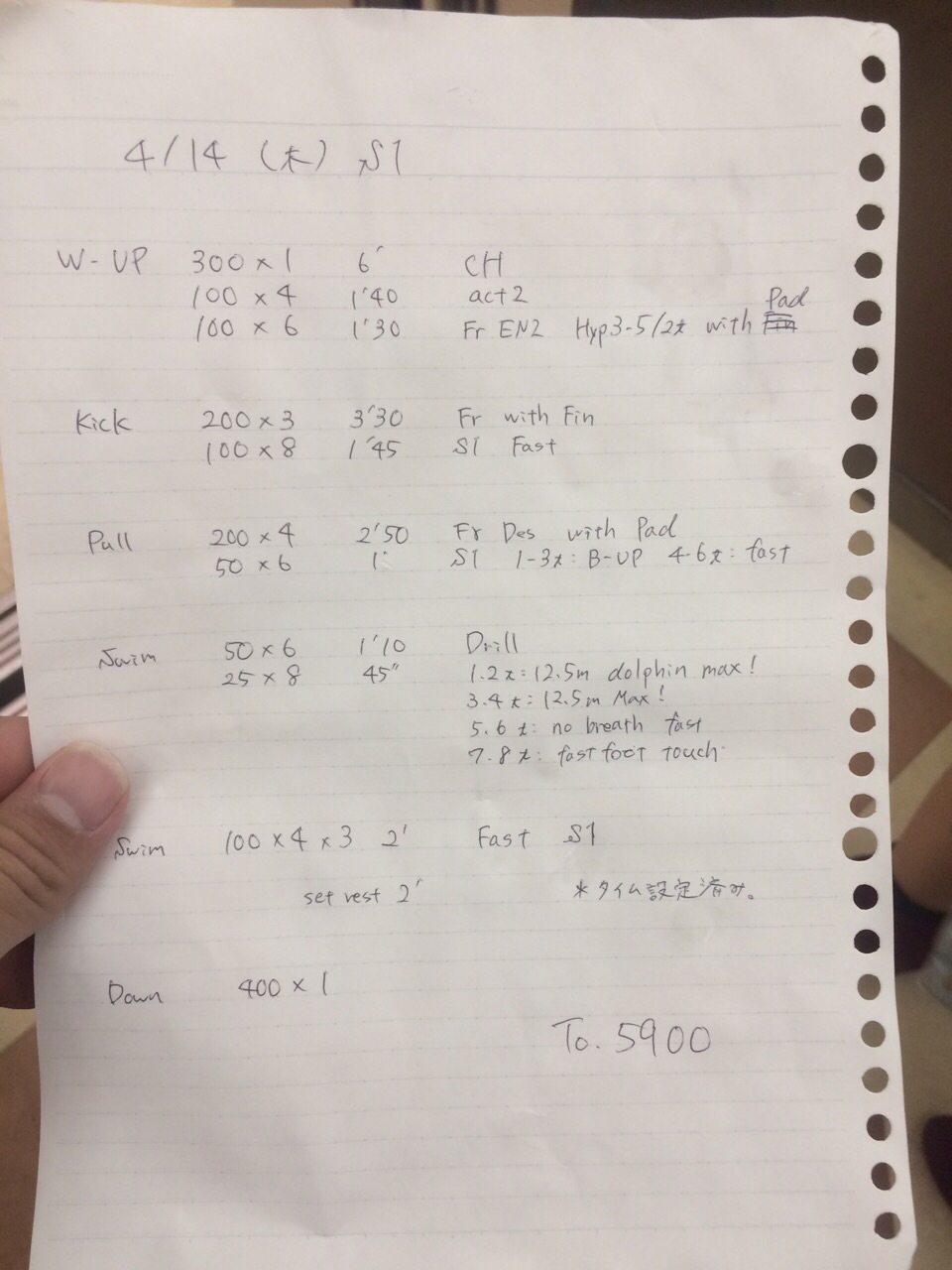 自分はドリルでフォームを変えようと無理に泳いで背中をつりそうになってメインを100%で泳ぐことが出来ませんでした