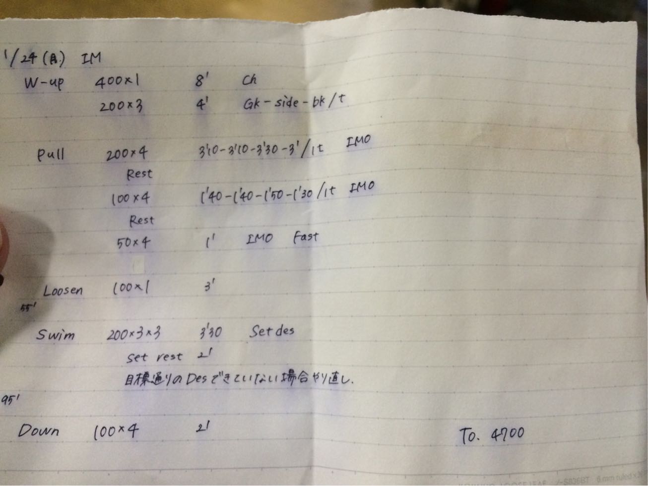Desでは私は1セット目が楽に泳げていいタイムを出してしまったために2セット目でタイムが落ち、set desできなかったためにやり直しの対象になりました。