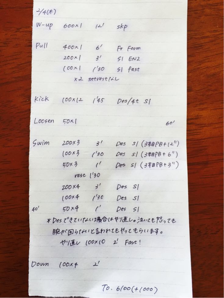 Pullでは大きく泳ぐことを意識してました