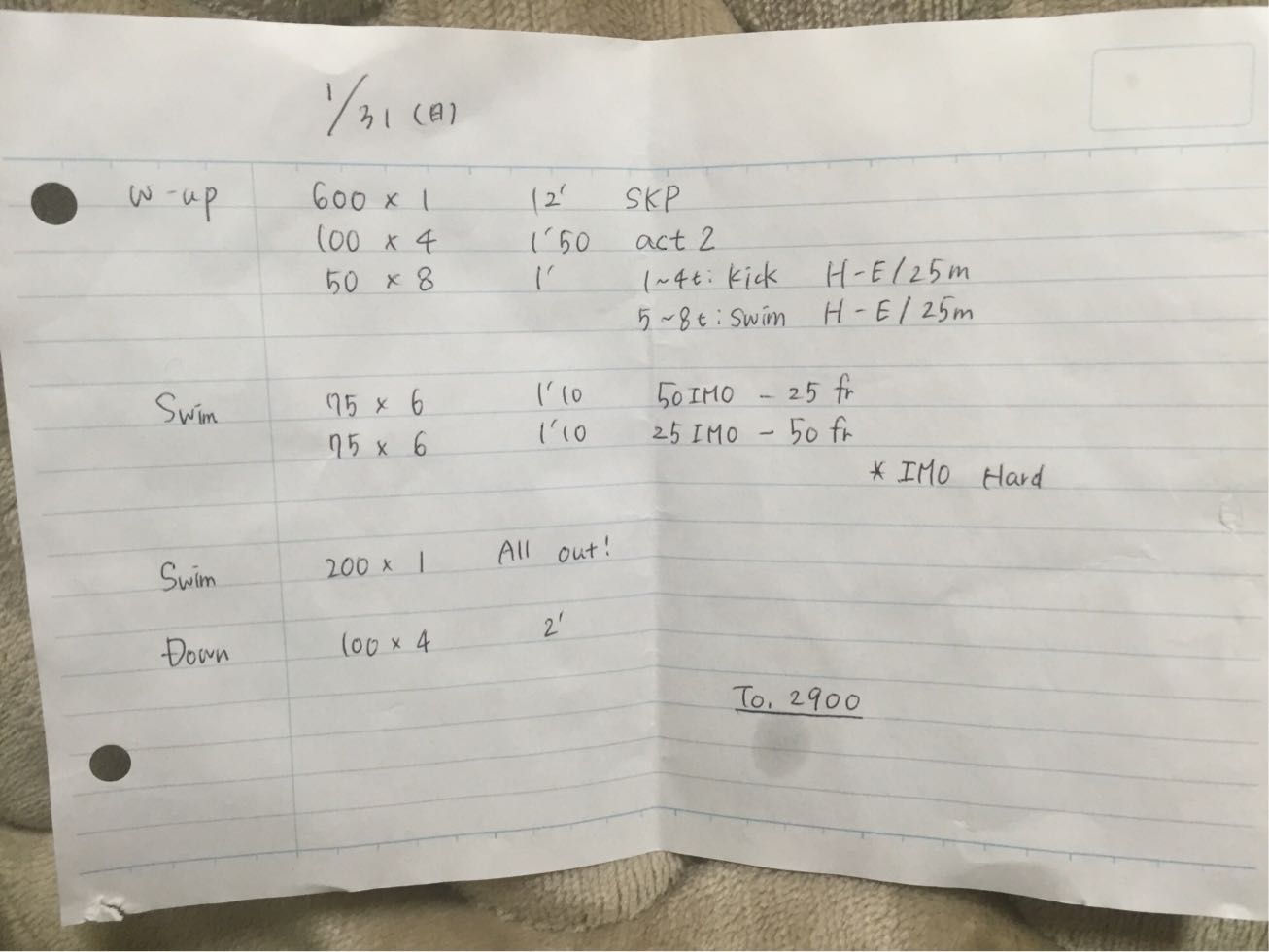今週はS1中心のメニューになりました。