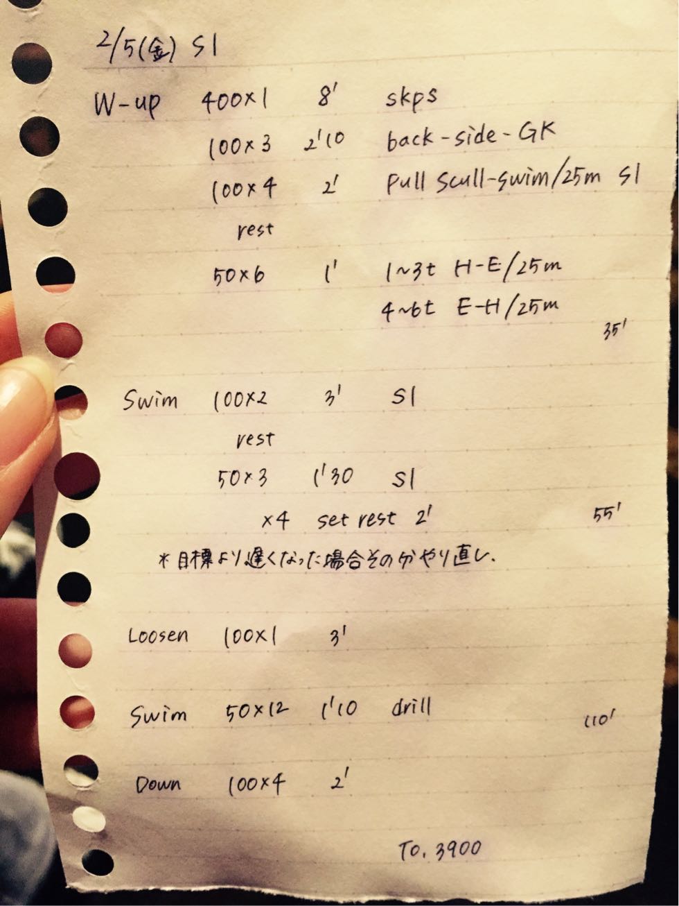 Desでは私は1セット目が楽に泳げていいタイムを出してしまったために2セット目でタイムが落ち、set desできなかったためにやり直しの対象になりました。