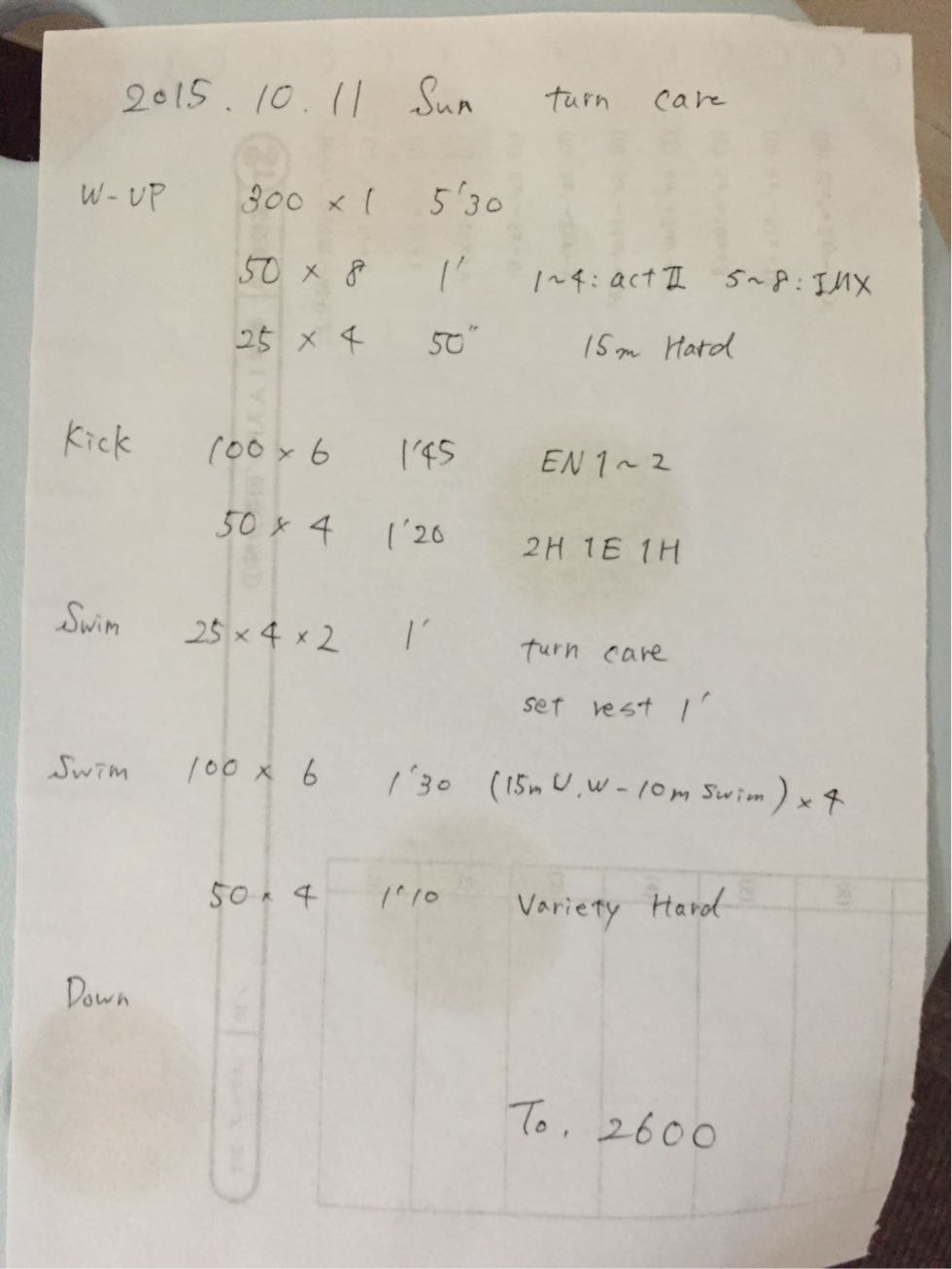 フォームが崩れてタイムが落ちてきます。そんなとき、せめてターンだけはしっかりやって下さい。