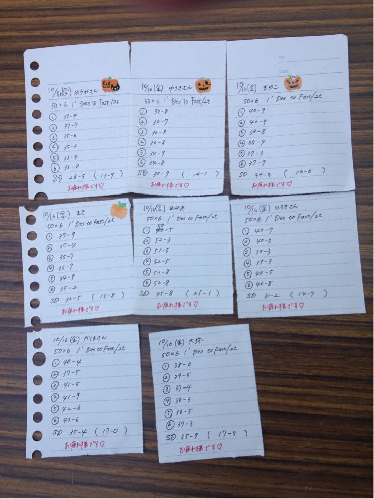 ゆうきさんやゆうやさんのように、タイムの上に内容を書かれていなくても見ただけでDes to Fastだとわかるようなタイムで泳げるようになってほしいと思います!
