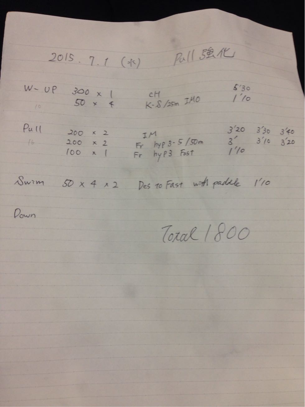 そして最後の50×4は時間の都合で1本のスタートダッシュになりました。