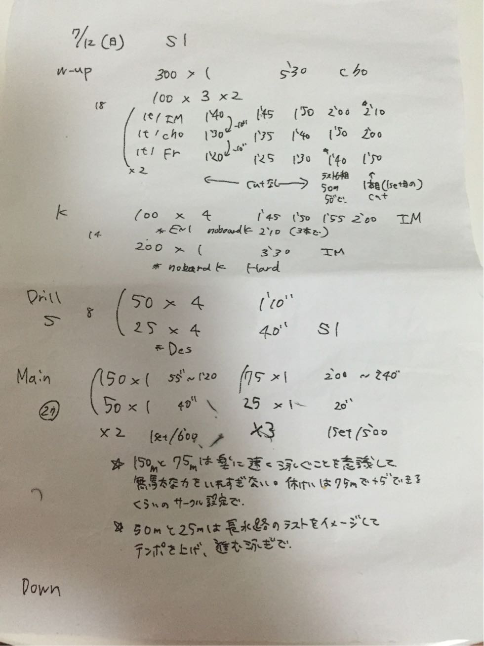 最後の150×4は疲労が溜まってる状況で大幅にサークルを上げるメニューだったのでとてもしんどく、フォームも崩れてきて…という感じでした。そのしんどいときにフォームを少しでも意識して泳げたのがよかったと思います!