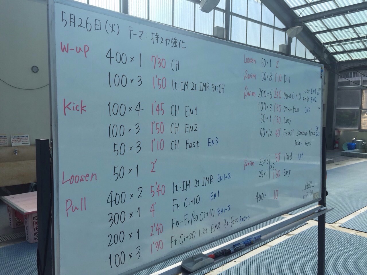 今日はいつもよりハードなメニューで大変だったと思いますが今は踏ん張って五大戦に向けて頑張って下さい!