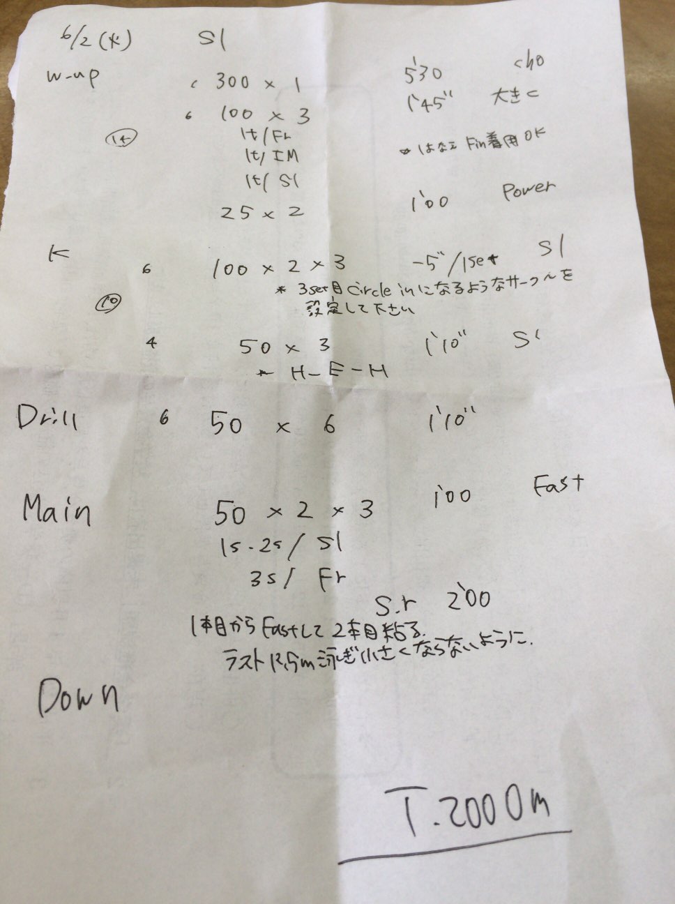 約2000mのメニューでした。