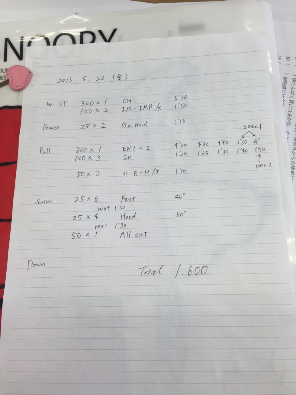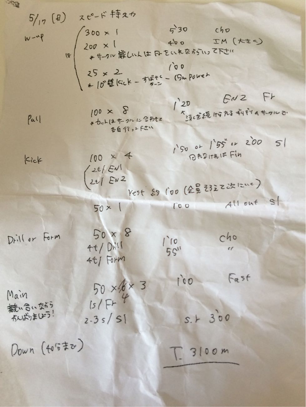 各自でサークルを決めて泳ぐ200×6のメニューでは、なみさんの言っていたように自分との戦いです。自分にどれだけ厳しくできるかが、これからの伸びにつながっていくと思います。