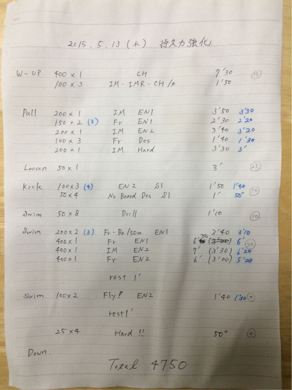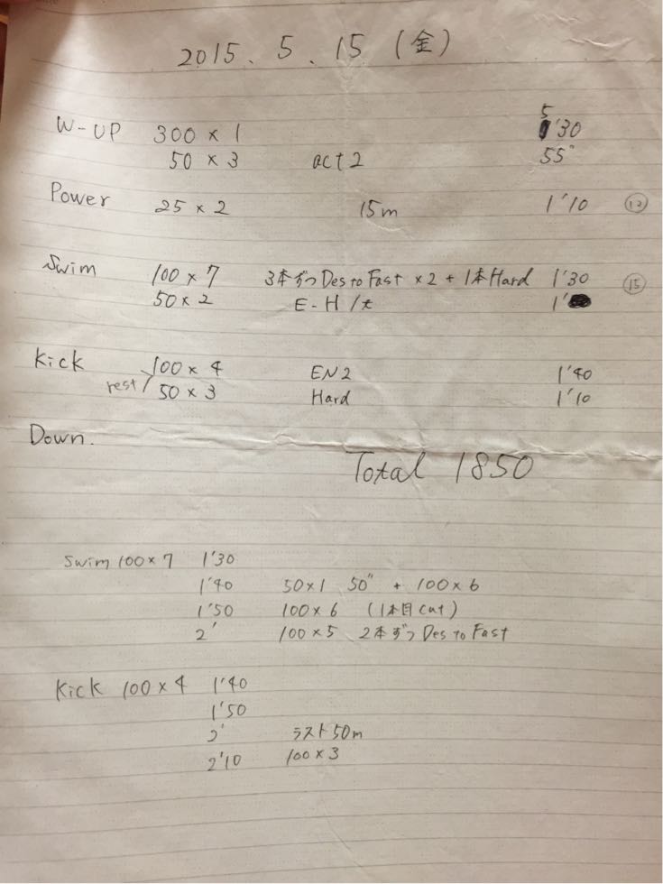 後半落とさないようにするには毎日、大量に泳ぐのが手っ取り早いと思いますがそういうわけにはいきません。限られた時間の中で後半に強くなるにはどうすればいいかを考えていこうと思います。