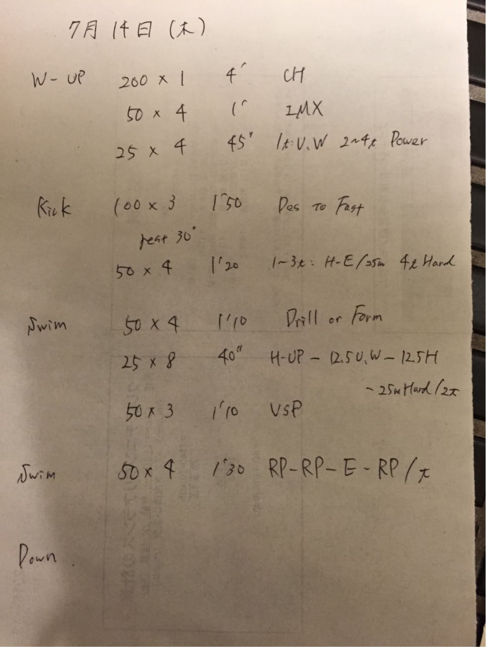 途中のスカーリング、ドリルでフォームを確認したおかげで第2メインでは普段と変わらずに泳げた気がします