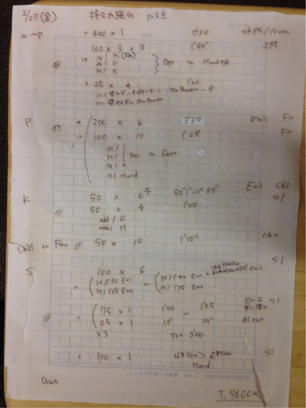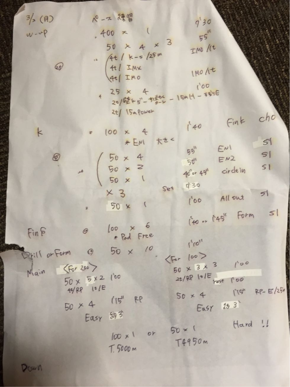 メインの100×2 RPでは2本トータルの目標タイムを決めていて、1本目のタイムを聞いたときにもう無理だと思いましたが、ちゃんと目標タイム以内におさめれたのでよかったです。