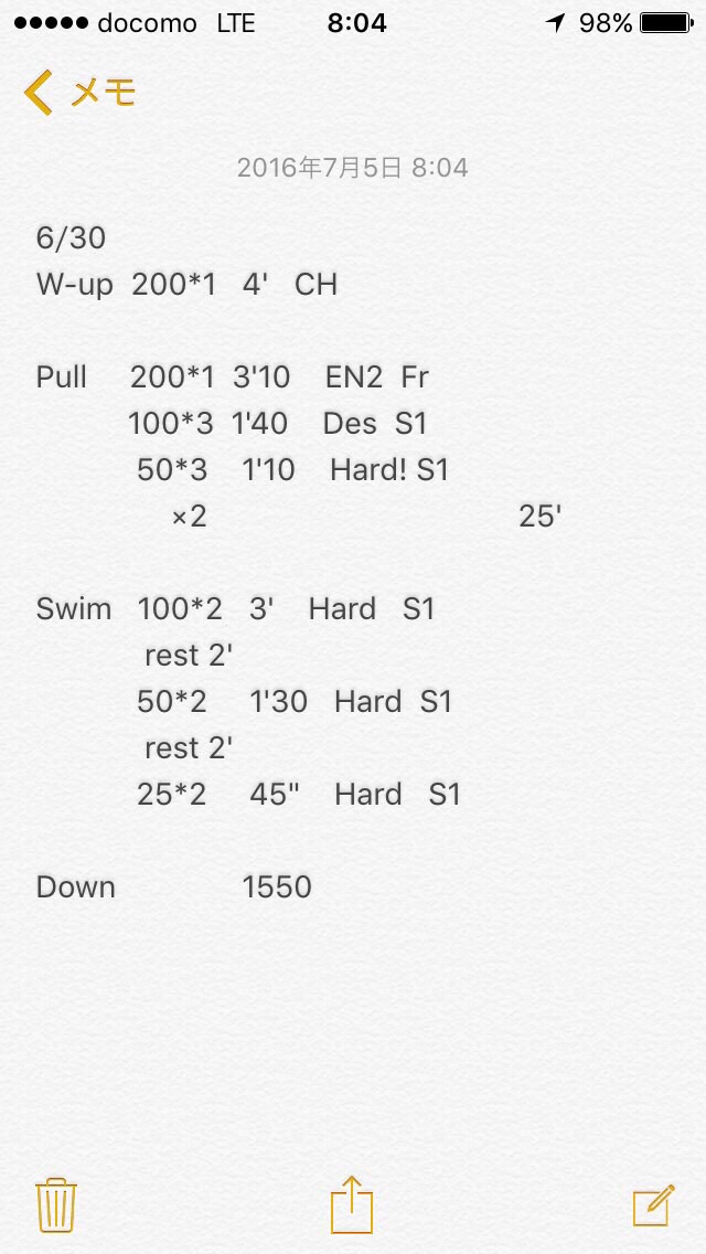 今日は、Pullを多めにやってからHardSwimだったので、Swimはいつもよりフォームを意識して泳げました。