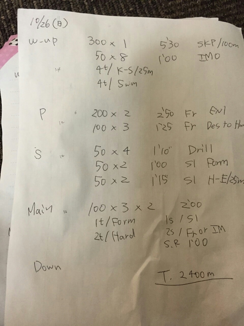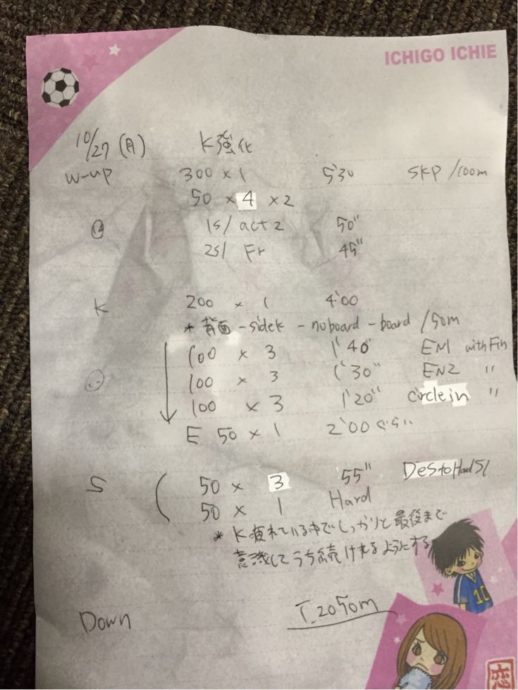 後期始まってから練習メニューに筋トレも加わり一昨日の日曜は体幹トレーニングと久しぶりにマシンを使って筋トレをしました。そのときの筋肉痛がまだ残っていて今日の練習はとにかく痛かったす。今、1回生はフォーム練を中心にやっています。今まで自分の泳ぎ方がどれだけおかしかったのかわかりました。なかなかイメージもしにくいし全然わかりません。それでも自分なりに意識して泳いでいたら、ゆうきさんに「少し前よりは良くなったんちゃう?」と言われて嬉しかったです。自分の中ではあまり出来たという感覚はまだありません。冬季公認に間に合えばいいですが、まぁあまり焦らずこの冬にしっかりフォームを直していきたいです。