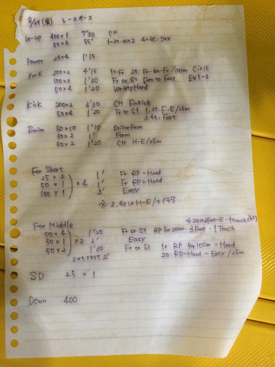 インカレ前ラスト長水練でした。