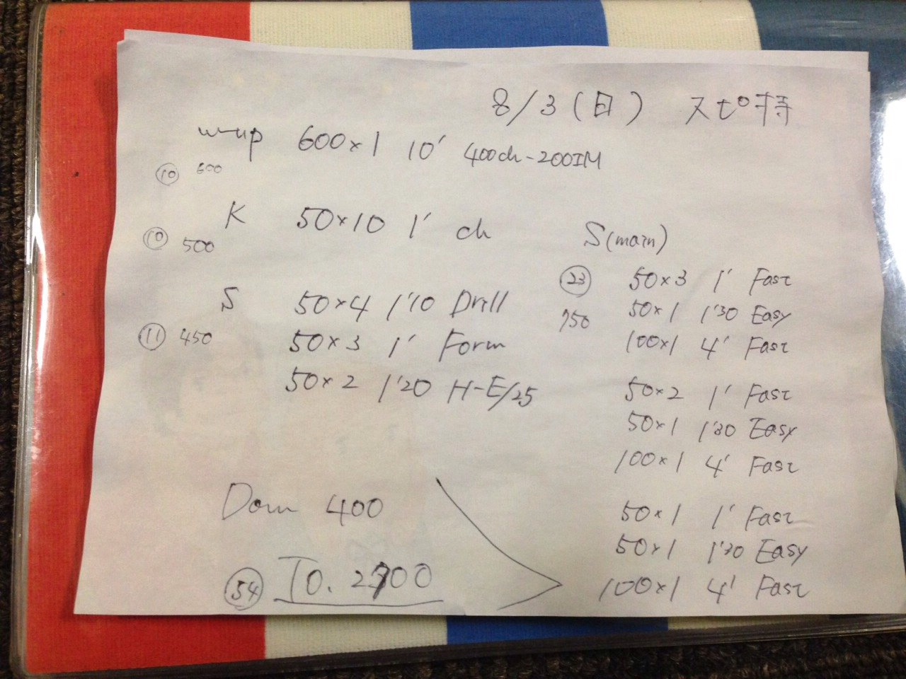 swim 50*10 1′10 drill