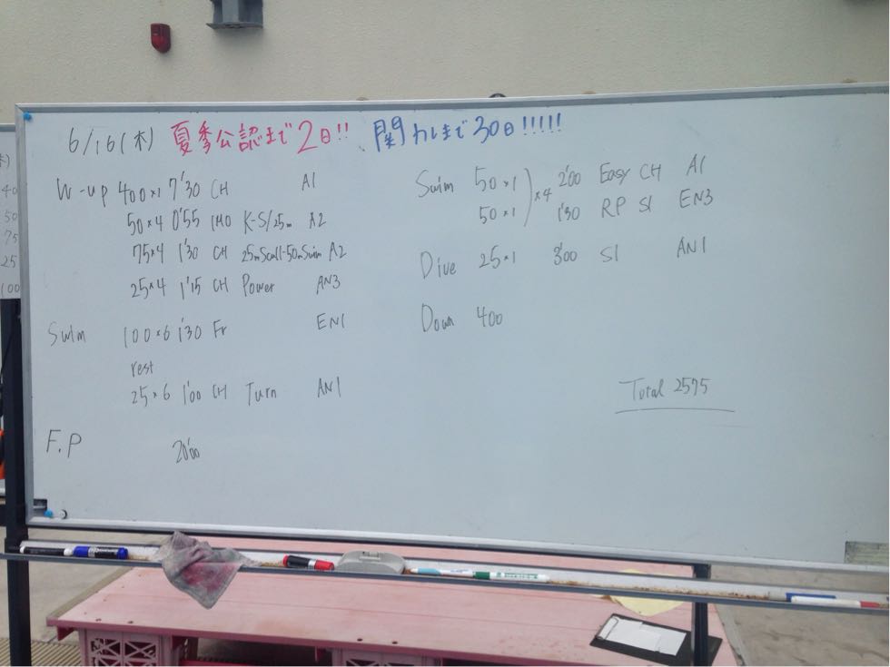 明日は夏季公認です。4回生は短水路ラストの試合となります。