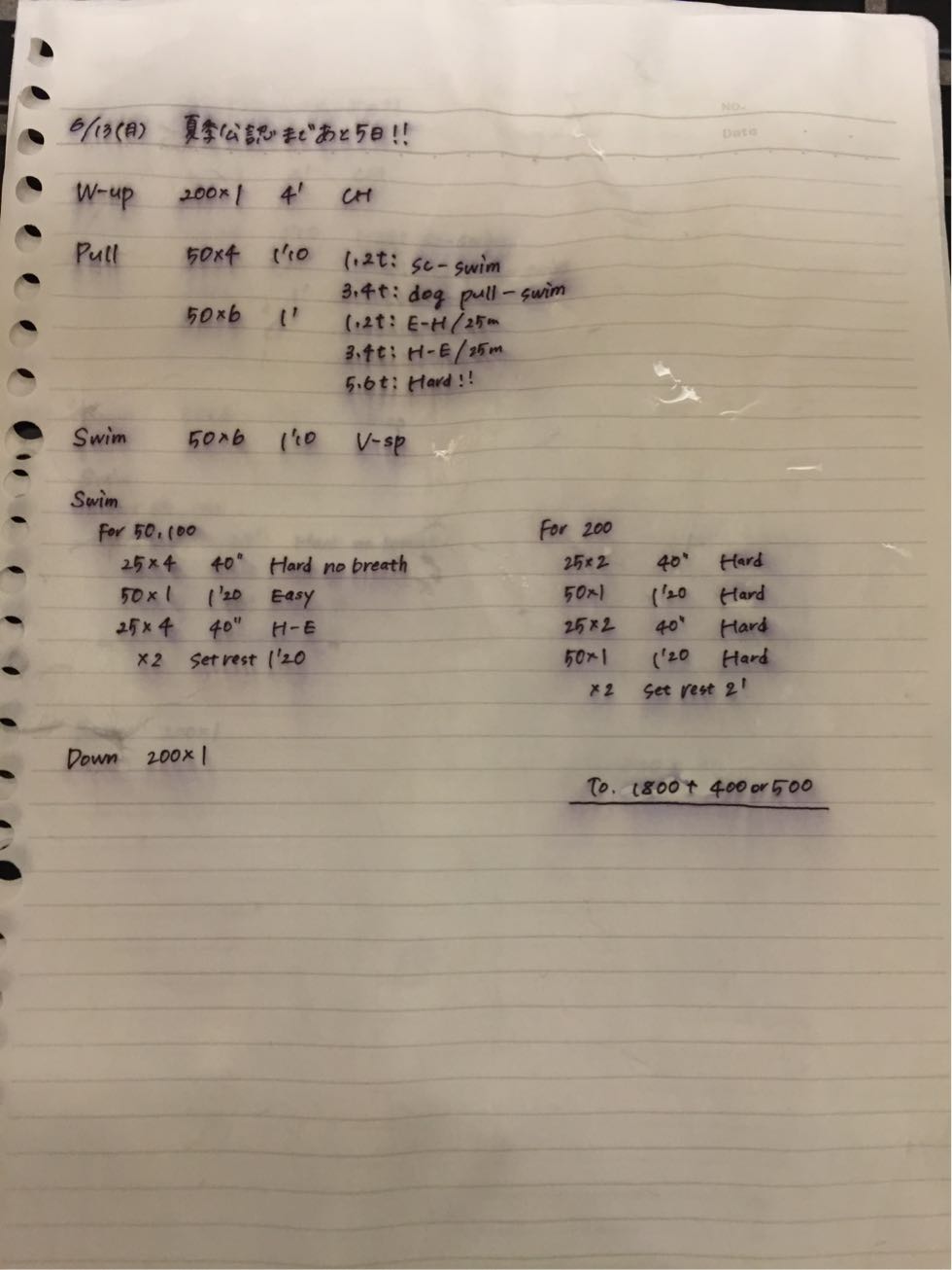 昨日に引き続き、今日もメインは出る種目の距離に分けました。