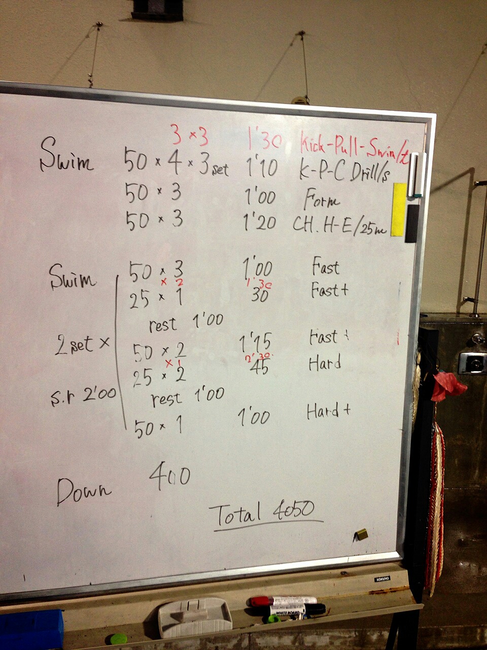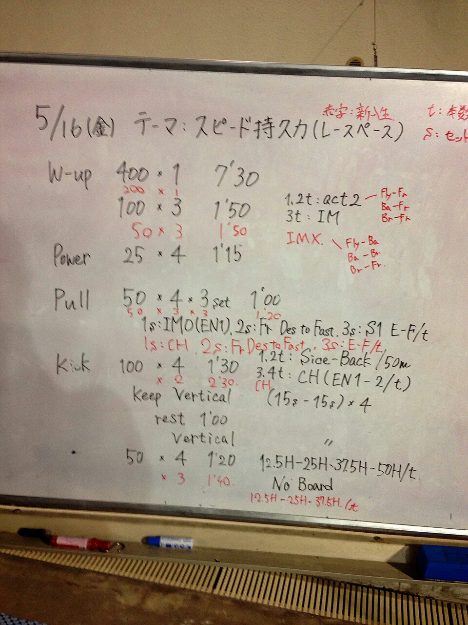 でした。遅上がりのテーマはスピード持久力で、早上がりは持久力を養うほど本数は泳げませんが、1本ずつタイムをばちっと合わせる練習はできたと思います。来週の試合は長水路なので、大きく泳いでタイムを揃えることを意識しましょうとのことでした。