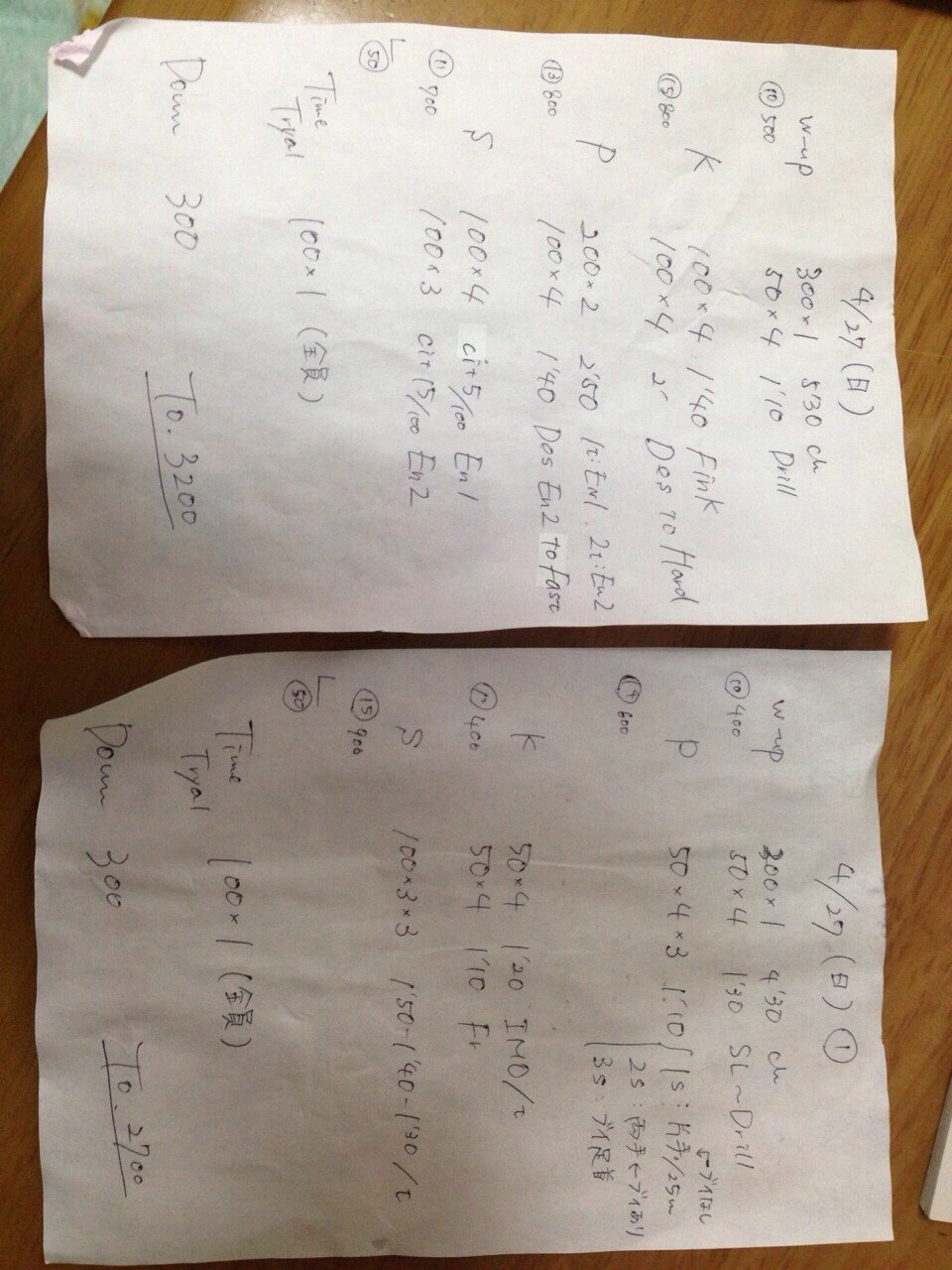 午前練が終わっててつおさんとたかさんに腰が沈んでる、その割に足が水面から出ていると言っていただきました。なので、午後のメインはそれに気をつけていったのですが、腹圧が途中で終わりました。イメージはあるし、体のもってきかたもわかるんですが、もたないです。これこそ、強化練で強くなっていきたいと思います。
