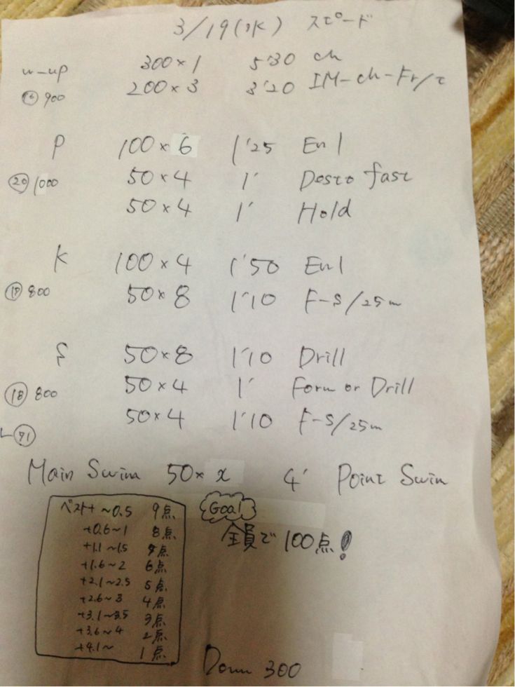 強化練が終わるとトライアクシスの短期教室のため早上がりになります。学校が始まるとさらに泳ぐ時間は減るので、体力、泳力落ちないよう筋トレなど頑張りましょう。